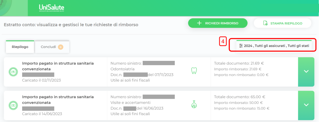 Per i familiari, sia fiscalmente che non fiscalmente a carico, per i quali non sia attiva una Polizza nel 2024, qualora non risultassero presenti nel riepilogo online, vi invitiamo a richiedere l’invio dell’estratto conto contattando direttamente UniSalute al Numero Verde 800 009674.