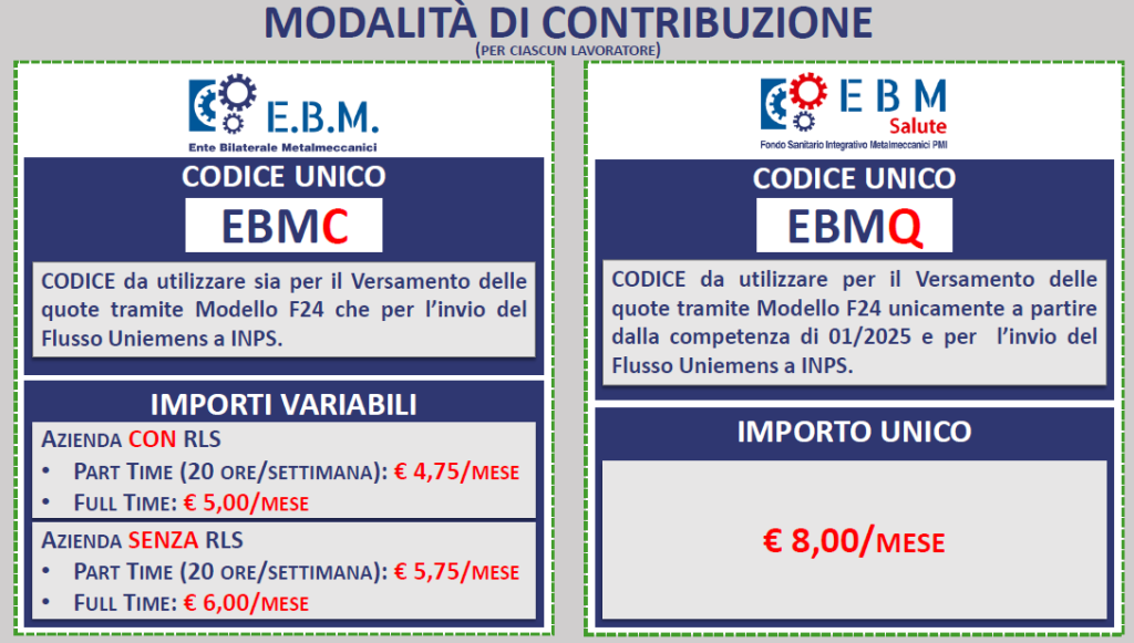 Pertanto, per evitare scoperture della Polizza Sanitaria per le Lavoratrici, i Lavoratori e per i componenti del loro nucleo familiare fiscalmente a carico, invitiamo Aziende e Consulenti a verificare le corrette modalità di contribuzione ad EBM Salute, e ad E.B.M., e correggere eventuali errori dalla prima competenza utile: